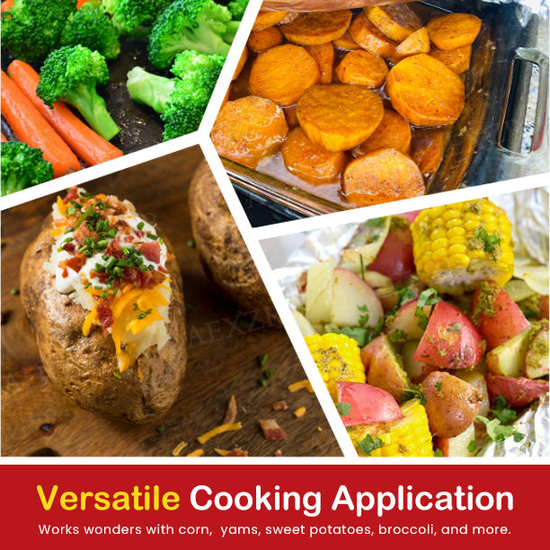 Versatile Cooking: While it’s perfect for potatoes, it also works wonders with corn, carrots, yams, sweet potatoes, broccoli, and more. Fresh, healthy meals made easy! You can even warm tortillas, steam dumplings, or reheat leftover bread for a fresh-out-of-the-oven feel.